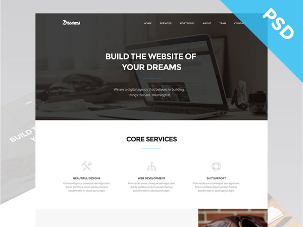 Dreams is a free PSD web template built by Mathavan Jaya. Dreams is a modern one page web template designed for almost any purpose. It’s a beautiful template that’s designed with the Bootstrap framework in mind.