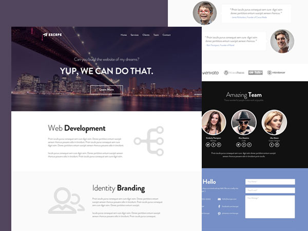 Escape is a free PSD web template built by Mathavan Jaya. Escape is a one page web template that was designed with agencies in mind. This template is ideal for those looking for a simple one page solution to describe your business and offer your services.